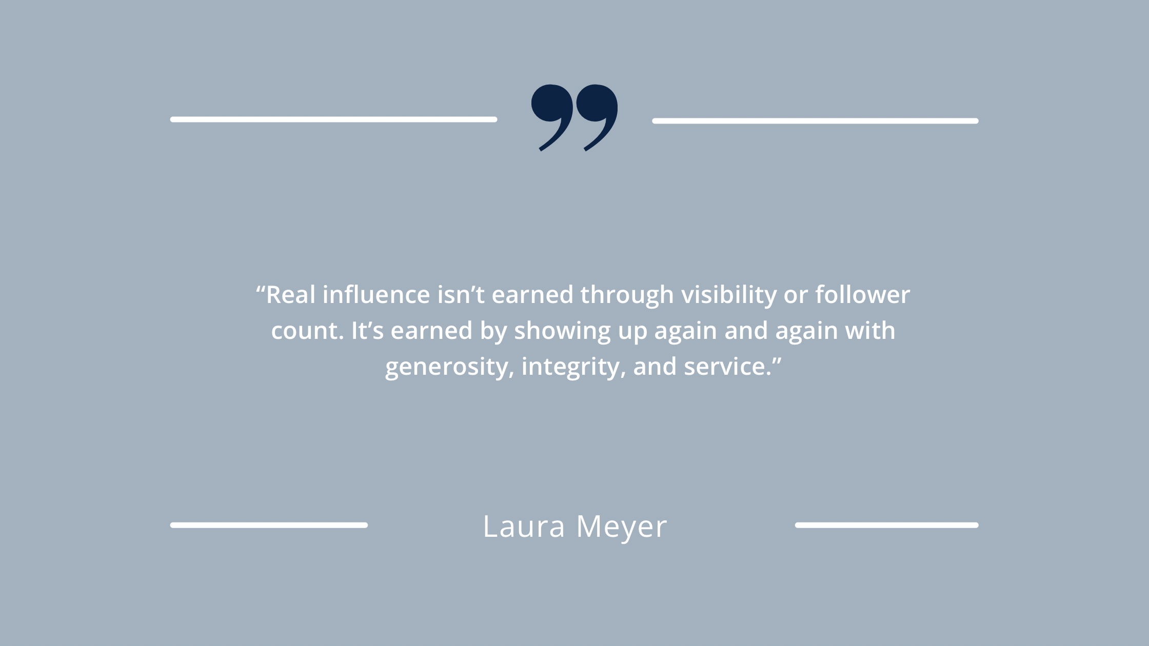 “Real influence isn’t earned through visibility or follower count. It’s earned by showing up again and again with generosity, integrity, and service.”